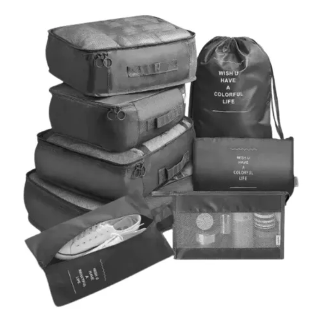 Set Completo: Incluye 8 piezas de diferentes tamaños para organizar ropa, zapatos, accesorios y artículos de higiene de manera eficiente.